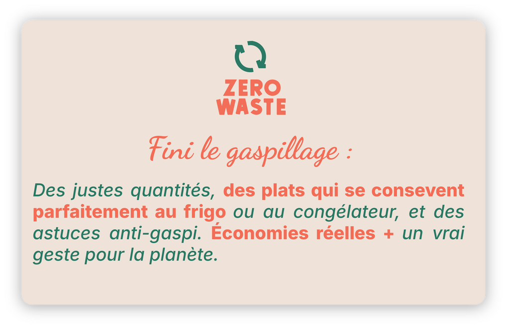 Vous gérez le budget et les produits – je cuisine avec ce que vous aimez, pour éviter tout gâchis.